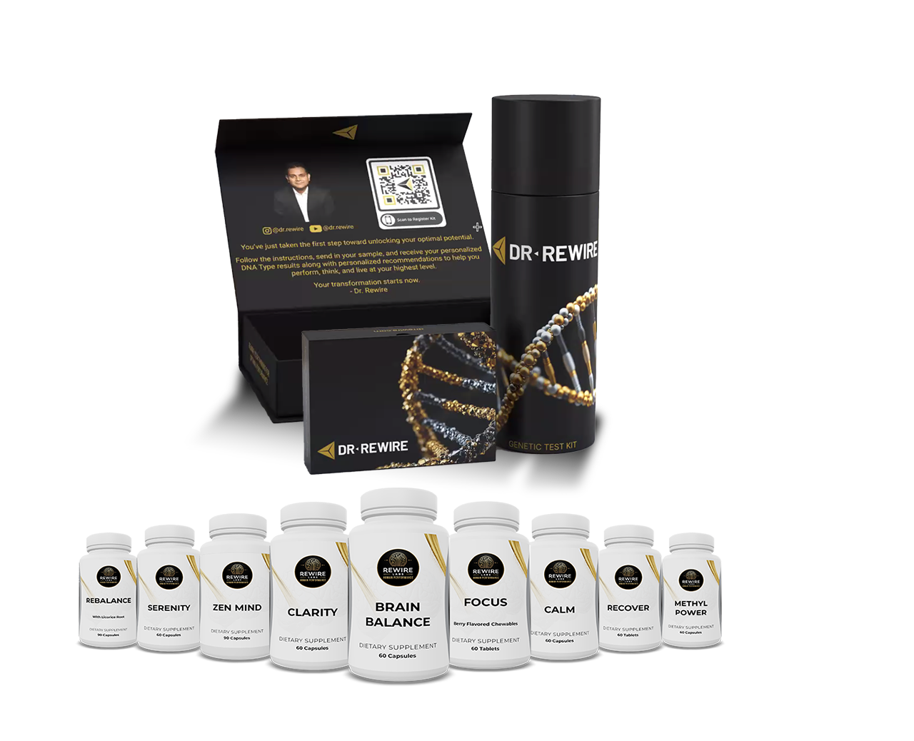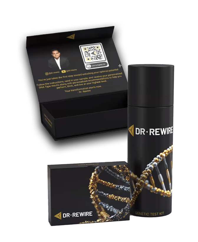 We are proud to collaborate with Dr. Rewire—brain performance doctor to Daymond John, star of Shark Tank—to bring you the Dr. Rewire Brain DNA Test. This isn’t just another health report. It’s a precision tool used by top performers to optimize mental clarity, emotional resilience, and long-term well-being through the lens of your DNA.